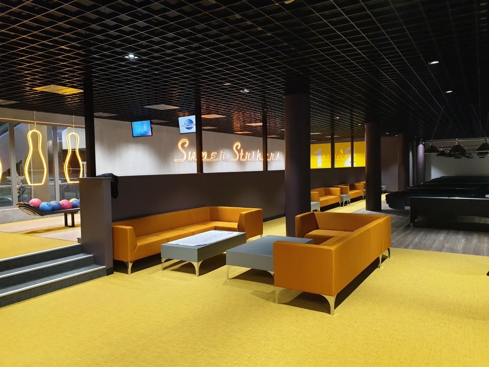 Zrealizowana zostala modernizacja strefy rozrywki w budynku MDP w Łodzi. Na pierwszym piętrze powstała przestrzeń zaprojektowana przez STOFORM STUDIO: dwa tory do bowlingu Super Strikers, strefa ze stołami bilardowymi, oraz część z symulatorami i automatami zręcznościowymi. Całość uzupełnia bar i strefy soft - sitting.