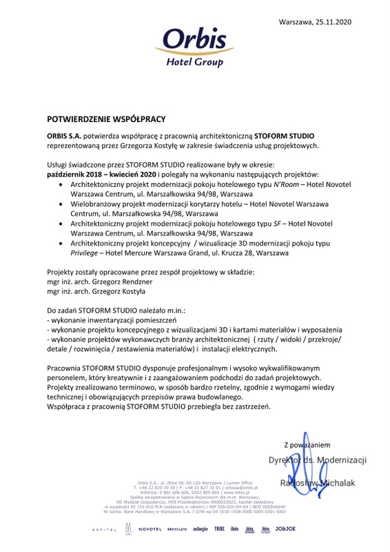 ORBIS S.A. potwierdza współpracę z pracownią architektoniczną STOFORM STUDIO